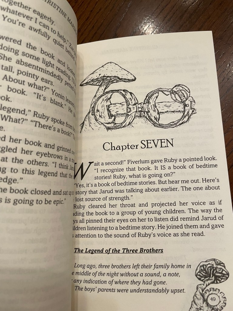 Steve also creates gorgeous and whimsical illustrations for the insides of the books. Chapter headings for the retellings, art that embodies the story, and more.